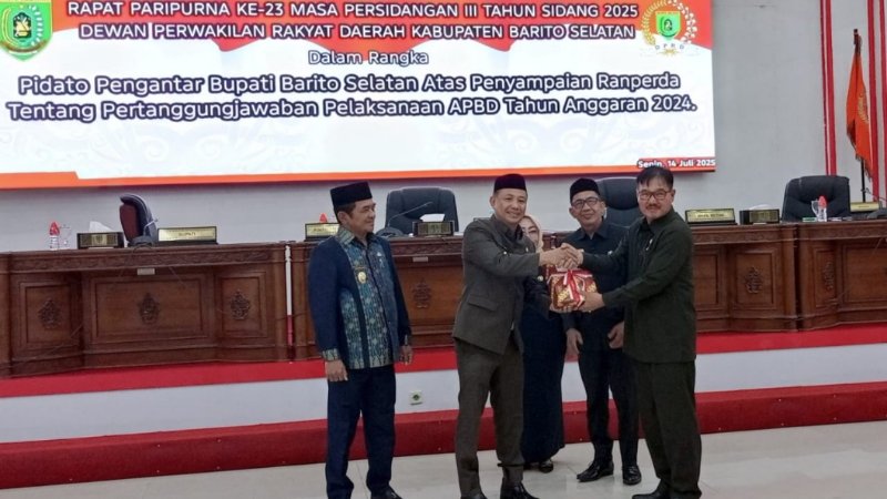 Bupati Barsel Serahkan Ranperda Pertanggungjawaban APBD 2024 dalam Paripurna ke-23
